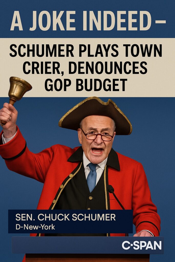 The greatest joke here is Schumer’s insistence on thrusting us into a narrative of panic and disarray. I’m halfway expecting him to show up to the next press conference dressed like Paul Revere, raving about the GOP’s fiscal Redcoats coming to pillage our prosperity.