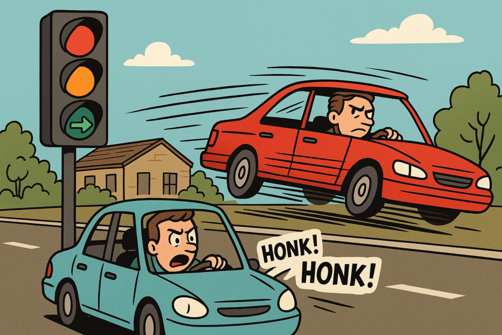 Scene: an entirely ordinary traffic light, right here in Small-Town, USA. Nothing out of the ordinary, until, you guessed it – Mr. Impassive decides it’s time for me to get acquainted with the underappreciated art of defying traffic logic.